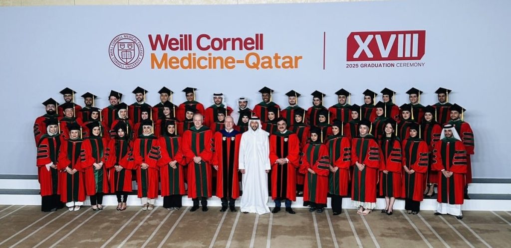 احتفلت وايل كورنيل للطب – قطر، إحدى الجامعات الشريكة لمؤسسة قطر للتربية والعلوم وتنمية المجتمع، بتخريج 45 طبيبا وطبيبة في دفعة 2025، ليصل عدد الخريجين منذ أول دفعة في عام 2008، إلى 641 طبيبا وطبيبة.