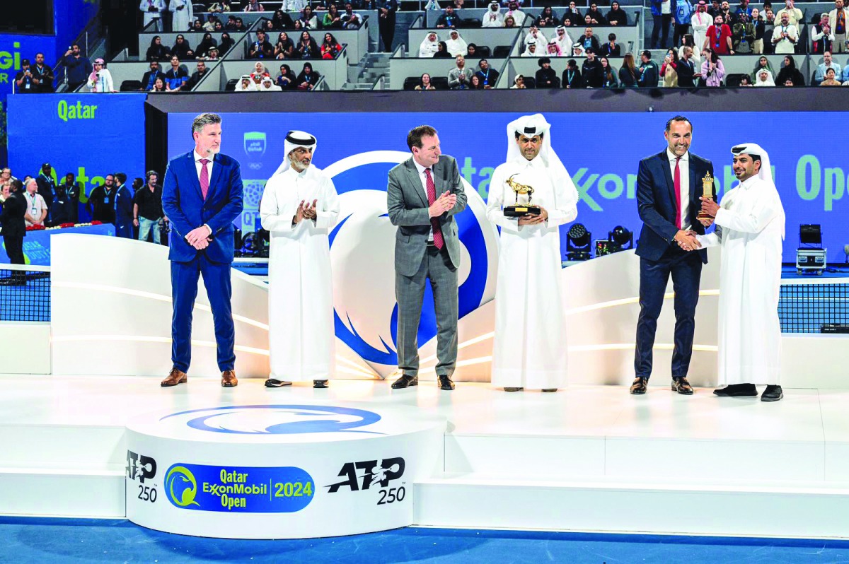 وقال دومينيك جينيتي:مع ختام نسخة أخرى رائعة من بطولة قطر إكسون موبيل المفتوحة، نود أن نتوقف لحظة لتكريم سعادة ناصر الخليفي، رئيس الاتحاد القطري للتنس، وتقدير جهوده الاستثنائية في نجاح البطولة على مر السنين، حيث يعتبر دعمه الدافع الرئيسي لتطور البطولة ونجاحها، وينبغي علينا اليوم تقدير بصماته الواضحة والمميزة التي جعلت منها بطولة استثنائية”.. ومن جانبه قال سعادة ناصر الخليفي “أود أن أشكر إكسون موبيل على هذا التكريم الرائع، لقد كانت مفاجأة عظيمة بالنسبة لي إن الشراكة المميزة بين الاتحاد القطري للتنس وإكسون موبيل تعكس التوافق الكبير بين قيم وأهداف كل منهما في بطولة قطر إكسون موبيل المفتوحة، الحائزة على الجوائز، وينبغي علينا أن ندرك أهمية التزام إكسون موبيل قطر، باعتبارها راعي اللقب، بما تقدمه رياضة التنس من قيم رائعة مثل الوحدة والعمل الجماعي والاحترام والابتكار والصداقة والتميز وغيرها من القيم التي يحرص الاتحاد القطري للتنس على دعمها وتعزيزها، بما يليق بمكانة البطولة.