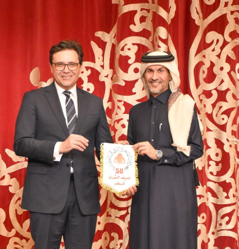 وسط إشادة واسعة بالدور الثقافي للدوحة، سلم الدكتور أحمد فؤاد هنو وزير الثقافة المصري، اليوم، سعادة الشيخ جاسم بن عبد الرحمن بن محمد آل ثاني، سفير دولة قطر لدى مصر ومندوبها الدائم لدى جامعة الدول العربية، شارة مشاركة دولة قطر كضيف شرف في معرض القاهرة الدولي للكتاب في دورته الثامنة والخمسين المقررة عام 2027.