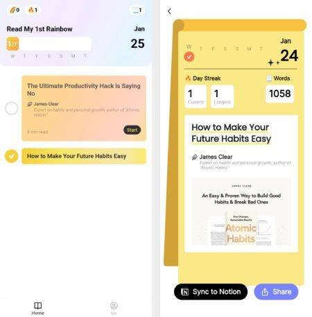 هذا التطبيق ليس وسيلة أخرى للقراءة المؤجّلة لأنّه يتيح لكم حفظ مواد في داخله، ويقدّم لكم مجموعة من المقالات عالية المستوى التي تدور حول كلّ ما يتعلّق بالإنتاجية – كلّ شيء، من اكتساب فهم أوسع لمفاعيل الذكاء الاصطناعي إلى تحقيق الأهداف المهنية والاستفادة من ساعات العمل المركّزة. يقترح عليكم التطبيق يومياً مقالاً واحداً بناءً على اختياراتكم الخاصة السابقة، ويشجعكم على قراءته. صحيح أنّ مجال الموضوعات التي يغطّيها ضيّق نسبياً، ولكنّه حريصٌ على تزويدكم بمواد تغطي مجالات تطوير الحياة واكتساب مفهوم أعمق للمواضيع المعقّدة والتقنية.يضمّ «ريد باي إي آي» أيضاً أدوات لحفظ الملاحظات أثناء القراءة، ولإضافة أفكاركم وتفاعلاتكم – وجميعها قابلة للتخزين في الخدمة نفسها. وعلى جبهة الذكاء الاصطناعي، يزوّدكم التطبيق بمدرّب يعتمد على برنامج «جي بي تي – 4»، يقترح أسئلة ليحثّكم على التفكير في أيّ لحظة تسجّلون فيها ملاحظات. يحلّل التطبيق كلّ مقطع ويشجّعكم على استكشاف الأفكار المرتبطة، ويقترح عليكم طرائق محدّدة لتطبيقها في حياتكم.