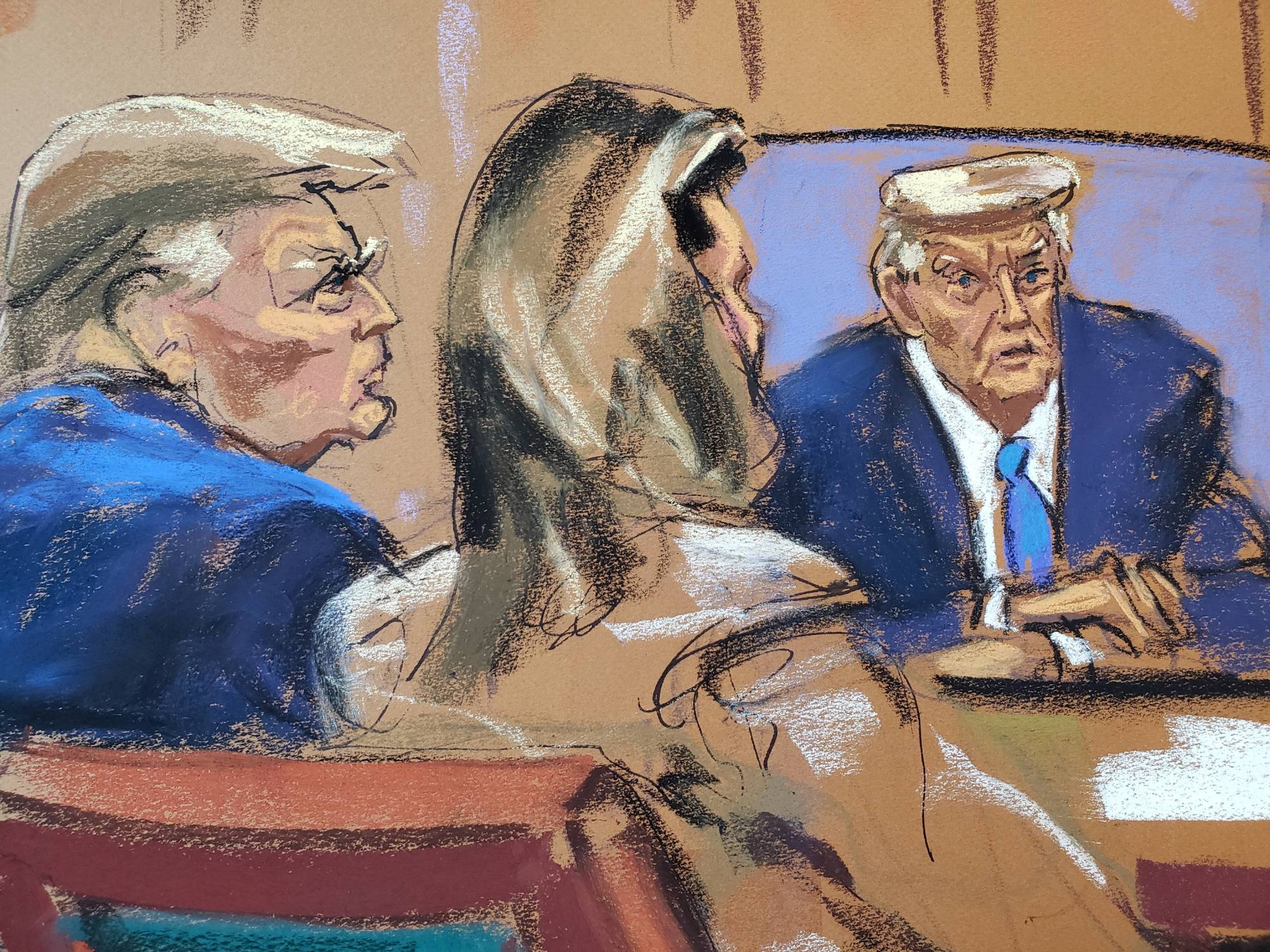 رسم تقريبي لترمب في محكمة مانهاتن الفيدرالية بمدينة نيويورك (رويترز)