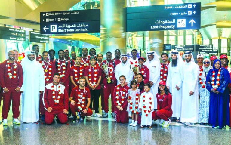 وأضاف:”تحقيق 23 ميدالية ملونة (11 ذهبا و8 فضيات و4 برونزيات ) والحصول على المركز الأول في البطولة هو ثمرة المثابرة والاحترافية التي يتمتع بها الرياضيون وطواقم التدريب والإدارة في مؤسساتنا الرياضية” وخلال عودتهم إلى مطار حمد الدولي امس حظي أبطال غرب آسيا باستقبال حافل، حيث كان في مقدمة مستقبليهم محمد عيسي الفضالة رئيس اتحاد ألعاب القوى وطلال منصور أمين السر المساعد وخالد المري، المدير التنفيذي للاتحاد. وجاءت الميداليات الذهبية عن طريق حاتم حميد في سباقي 800 متر و1500 متر، وعبدالرحمن في 400 متر حواجز ورمي المطرقة، ودانة سالم بسباق 100 متر، ومريم السالك ومبارك سعيد في 3000 متر، ويونس البلوشي وإبراهيم زكريا في القفز بالزانة وصالح محمود في قذف القرص، وذهبية التتابع 4×400 لكل من محمد كالي وأحمد هارون وسامر حسن ويوسف عبدالعزيز.