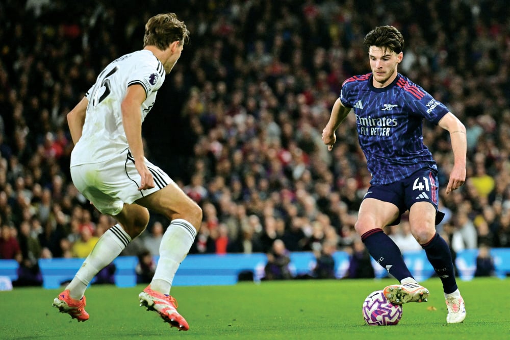 تمسك أرسنال بالصدارة بعد فوزه على مضيفه وجاره فولهام (1-0)، فيما ضرب النرويجي إرلينغ هالاند مجددا ووجد طريقه إلى الشباك للمباراة الحادية عشرة تواليا مع بلاده وفريقه مانشستر سيتي، وذلك بقيادته الأخير للفوز على ضيفه إيفرتون (2-0) السبت في المرحلة الثامنة من الدوري الإنجليزي لكرة القدم..وبذلك، بقي أرسنال وحيدا في الصدارة برصيد 19 من النقاط، بفارق ثلاث عن مانشستر سيتي الذي سجل له هالاند ثنائية الفوز على ضيفه إيفرتون.