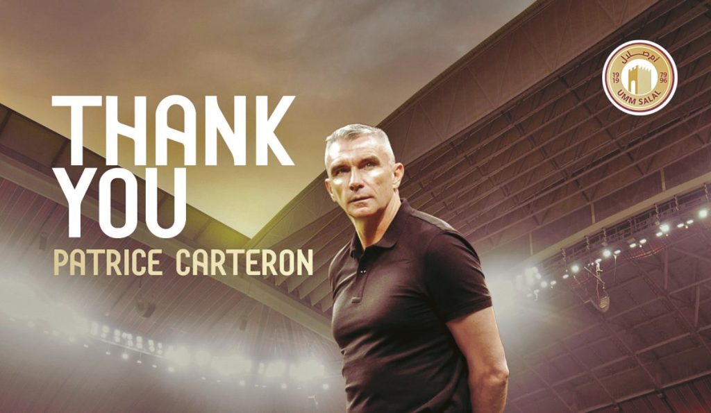 أعلنت إدارة نادي أم صلال امس عن انتهاء مشوار المدرب باتريس كارتيرون مع الفريق. وقد اشارت الشرق امس عن توجه داخل نادي أم صلال لإنهاء التعاقد مع المدرب، وذلك على خلفية النتائج السلبية التي حققها الفريق خلال الفترة الماضية في منافسات الدوري. وسيتطلب من ادارة النادي التعاقد مع مدرب يمكنه رفع مستوى الفريق الى المنطقة الدافئة على اقل تقدير.