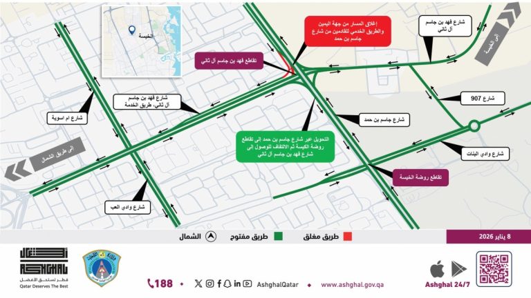 ‫ إغلاق مؤقت لمسار الانعطاف من شارع جاسم بن حمد