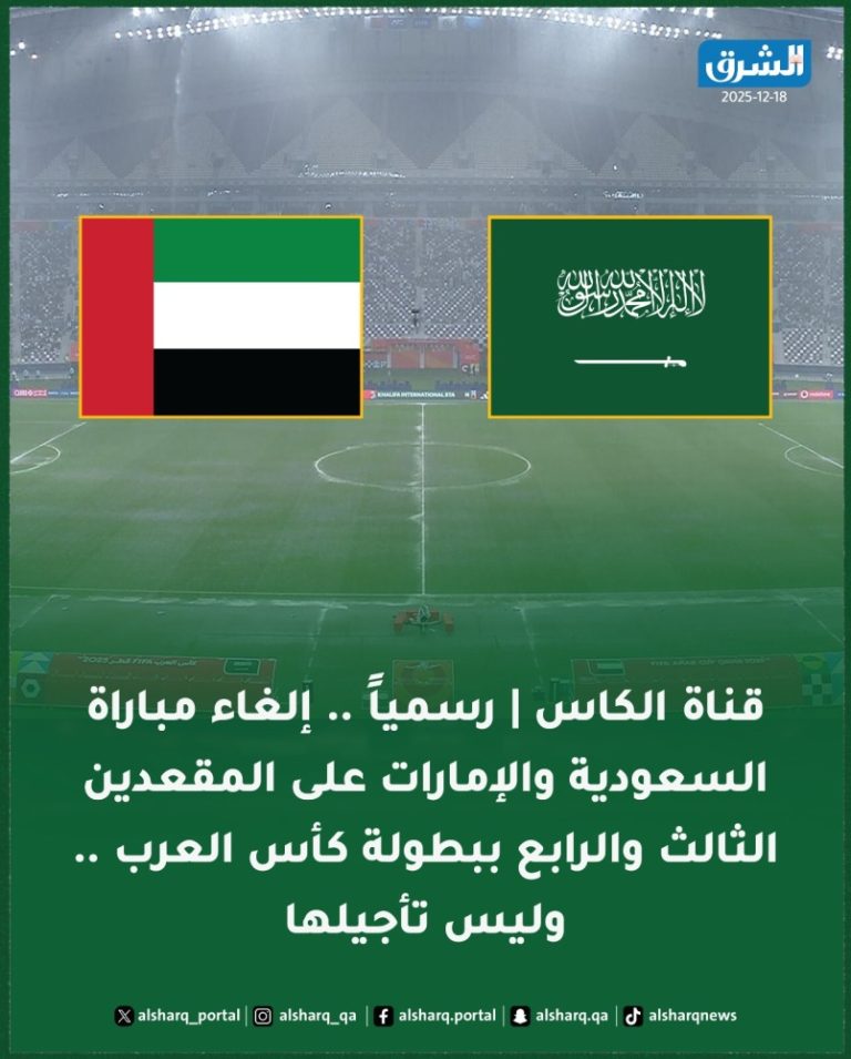 ‫ إلغاء مباراة السعودية والإمارات على المركز الثالث في كأس العرب بسبب الأمطار