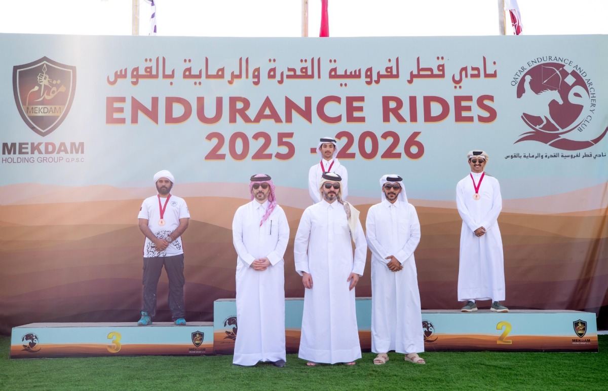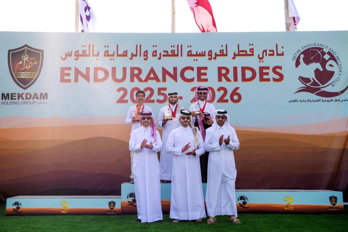 وتوج سعادة الشيخ محمد بن نواف آل ثاني رئيس نادي سباقات القدرة والتحمل الفائزين.