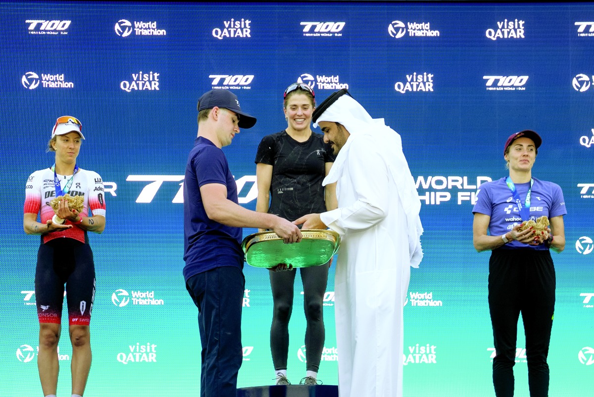 وشارك في مراسم التتويج كل من سعادة السيد سعد بن علي الخرجي، رئيس قطر للسياحة والسيد أنطونيو أريماني، رئيس الاتحاد الدولي للترايثلون وسعادة المهندس ياسر بن عبدالله الجمال، وكيل وزارة الرياضة والشباب.