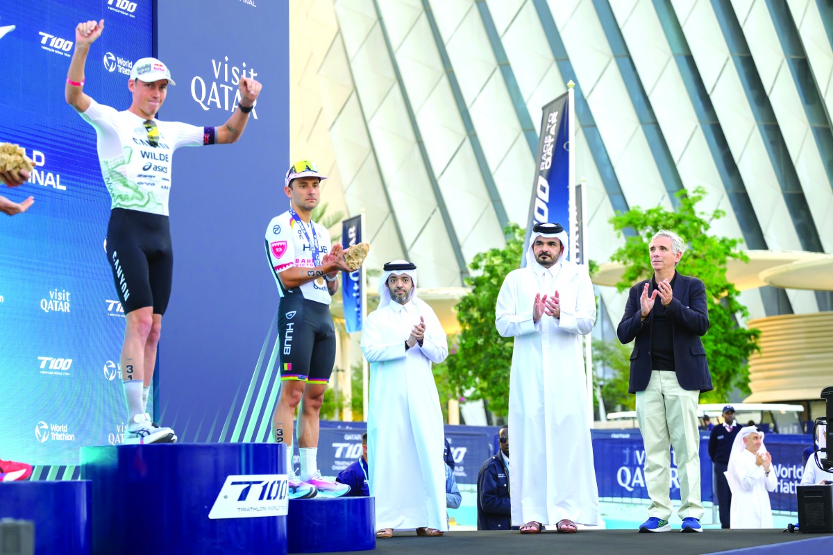 توّج سعادة الشيخ جوعان بن حمد آل ثاني، رئيس اللجنة الأولمبية القطرية، امس، الفائزين ببطولة العالم للترايثلون T100، التي استضافت الدوحة جولتها الختامية بمشاركة نخبة من أبرز نجوم اللعبة على المستوى الدولي.ففي منافسات الرجال للمحترفين بالجولة الختامية، حصل النيوزيلاندي هايدن وايلد على المركز الأول بزمن قدره 03:06:08 ساعة، متقدمًا على الأمريكي مورغان بيرسون الذي حل ثانيًا بزمن قدره 03:07:23 ساعة، فيما نال البلجيكي مارتن فان ريل المركز الثالث بزمن قدره 03:08:14 ساعة، وذلك عقب سباق قوي اتسم بمستوى فني مميز وتنافس كبير حتى مراحله الأخيرة.