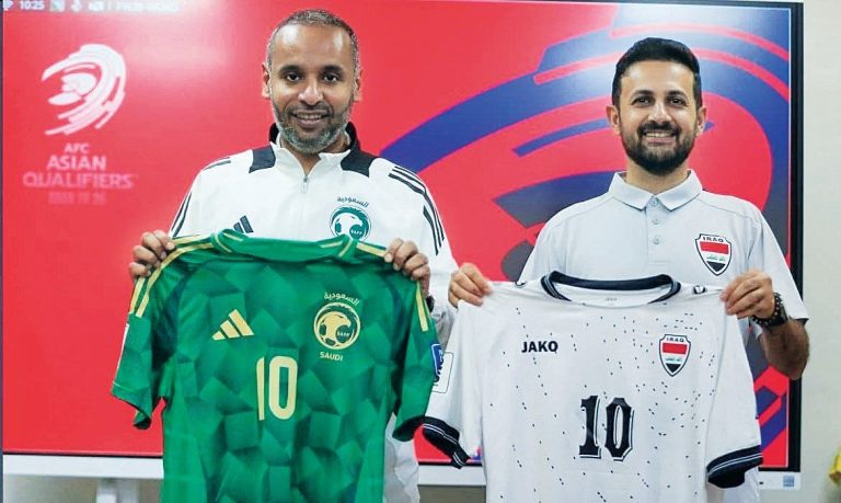 يلتقي المنتخب السعودي مع نظيره العراقي اليوم على ملعب مدينة الملك عبدالله الرياضية بجدة، ضمن الملحق الآسيوي المؤهل إلى كأس العالم 2026، ويسعى كلا المنتخبين للفوز من أجل حسم التأهل إلى النهائيات، حيث يتطلع المنتخب السعودي للتأهل للمرة الثالثة على التوالي والسابعة في تاريخه، وسيدخل المواجهة أمام العراق بفرصتي الفوز أو التعادل من أجل حجز مقعده في المونديال المقبل، في المقابل فإن المنتخب العراقي لا بديل أمامه سوى الفوز حيث إن التعادل يصب في مصلحة المنتخب السعودي بعد فوزه على إندونيسيا بثلاثة أهداف مقابل اثنين، في حين فاز المنتخب العراقي بهدف نظيف على نظيره الإندونيسي..وتتصدر السعودية ترتيب المجموعة الثانية بثلاث نقاط، بفارق الأهداف المسجلة عن العراق الذي يمتلك نفس رصيد النقاط.