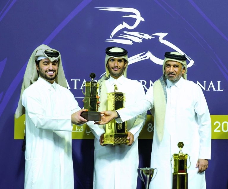 وتوج الفائزين السيد راشد سعيد عضيبة، رئيس قسم تنظيم السباقات بنادي قطر للسباق والفروسية.