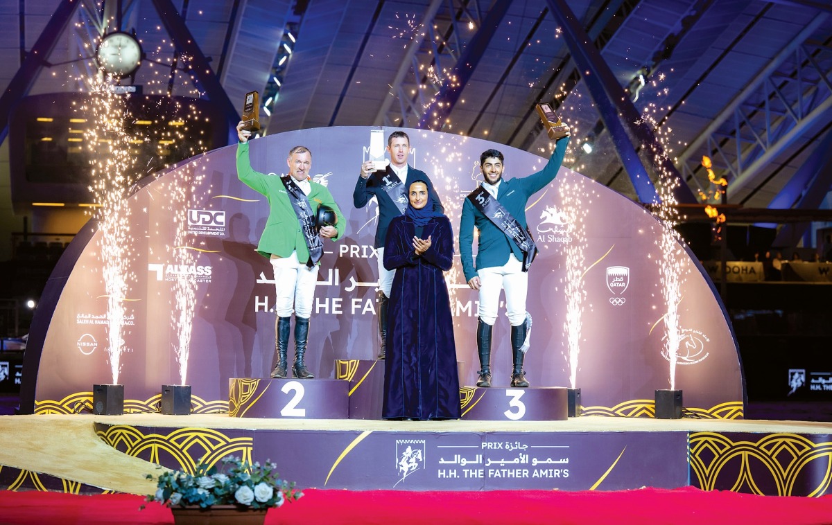 توجت سعادة الشيخة هند بنت حمد آل ثاني نائب رئيس مجلس إدارة مؤسسة قطر للتربية والعلوم وتنمية المجتمع، اليوم، الفائزين بالمراكز الثلاثة الأولى في شوط الجائزة الكبرى لفئة الخمس نجوم، في ختام منافسات الجولة الثالثة من جائزة سمو الأمير الوالد للفروسية، التي أقيمت على ميدان لونجين بالشقب، وسط مشاركة واسعة من نخبة الفرسان المصنفين عالميا، وبجوائز مالية تجاوزت قيمتها 3.3 مليون يورو.