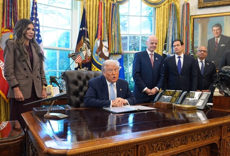 وخلال اجتماع في المكتب البيضاوي، أعلن ترامب عن نظام “فيفا باس” المصمم لتسريع مقابلات التأشيرات لحاملي تذاكر كأس العالم لكرة القدم 2026.