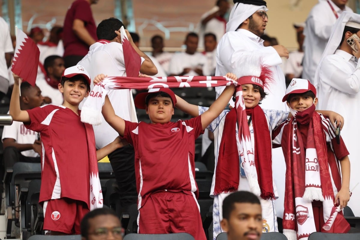 مع اطلاق الحكم الياباني يوزوكي اراكي صافرة انطلاق المباراة حرصت جماهير المنتخب الوطني على رفع لافتات ضخمة حملت اسم قطر والراية الوطنية في انسجام رائع اظهر مدى التناسق بين الجماهير التي رسمت اروع لوحة كرنفالية خلال اللقاء.