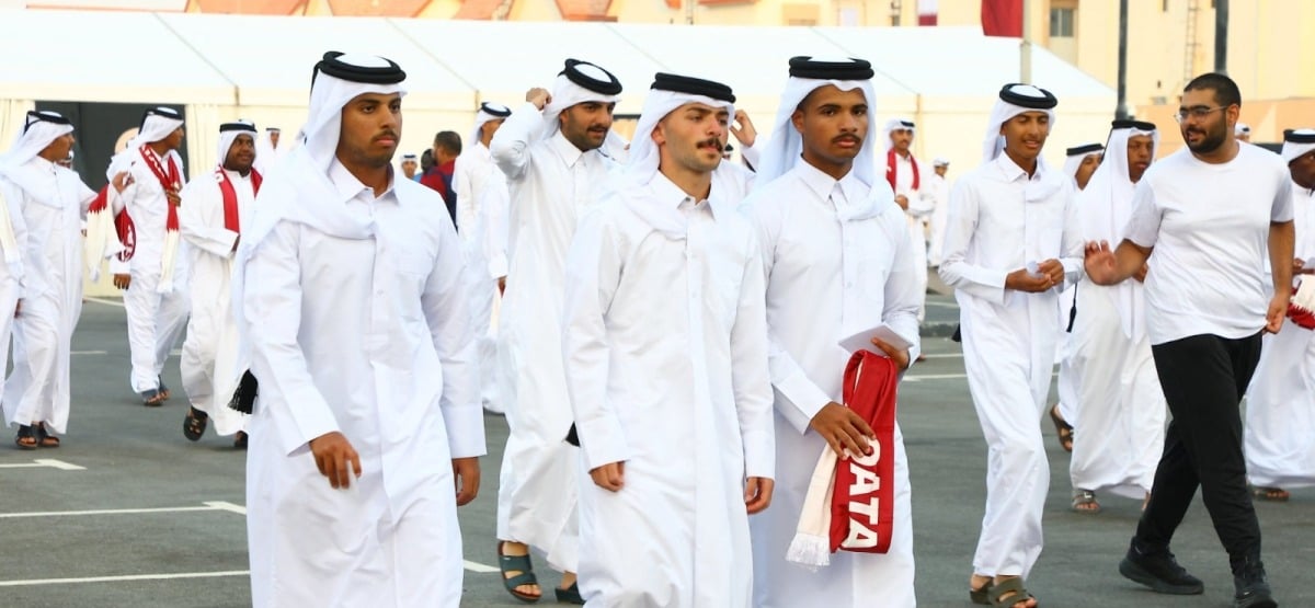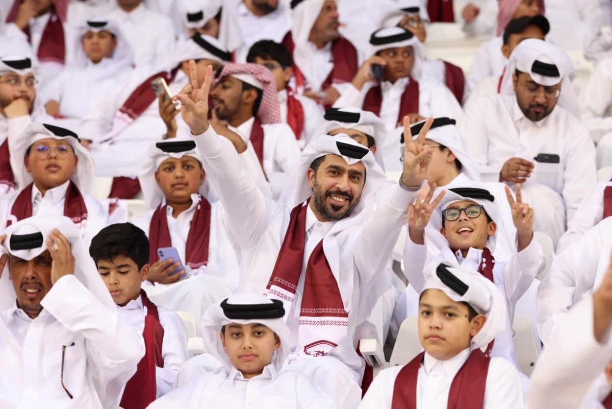 حرصت جماهير العنابي على تلبية نداء النشيد الوطني قبيل انطلاق صافرة البداية حيث ارتفعت الحناجر مرددة ” قسما بمن رفع السماء… قسماً بمن نشر الضياء..قطر ستبقى حرة..تسمو بروح الأوفـياء..سـيروا على نهج الألى…وعلى ضياء الأنبياء..قطر بقلبي سيرة..عـز وأمجاد الإباء.. قطر الرجال الأولين.. حماتنا يوم النداء.. وحمائم يوم السلام.. جوارح يوم الفداء”.