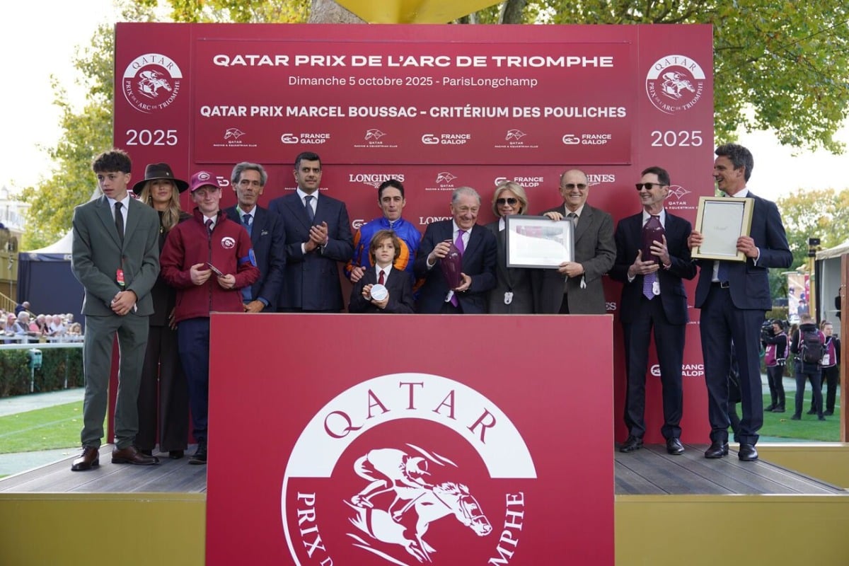 كما توج سمو الشيخ عبدالله بن خليفة آل ثاني الفائزين في شوط جائزة قطر قوس النصر من الفئة الأولى للخيل المهجنة الأصيلة، وحضر مراسم التتويج سعادة الشيخ علي بن جاسم آل ثاني، سفير دولة قطر لدى الجمهورية الفرنسية، وغيوم دو سان سن، رئيس فرانس غالو، وذلك بعد فوز المهر “داريز” ملك أغا خان ستدز بلقب شوط الجائزة العالمي، بقيادة الخيال ميكاييل برزالونا وتحت إشراف المدرب فرانسيس أونري، ليسجل المهر “داريز” اسمه في السجل الذهبي لصفوة الأبطال الفائزين بأفضل سباق للخيل في العالم.