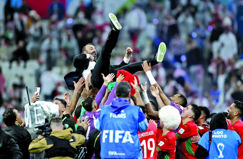 وأوضح السكتيوي انه إنسان لا يؤمن بالحدود، مشيراً إلى أن الشعوب العربية جسد واحد، مشيدا بالدعم الذي لقيه المنتخب من جماهير عربية مختلفة، وقال «أهدي هذا التتويج للشعب المغربي وللجماهير التي ساندت الفريق طوال المشوار في قطر».