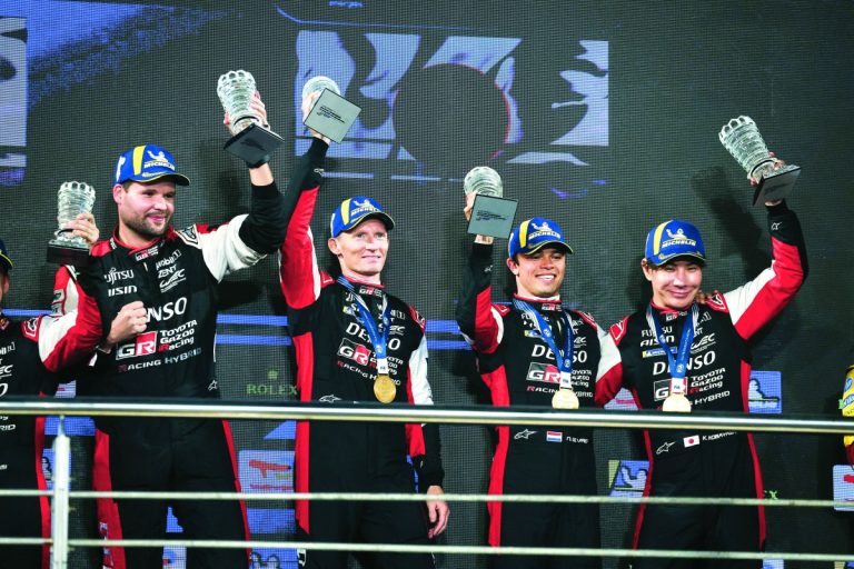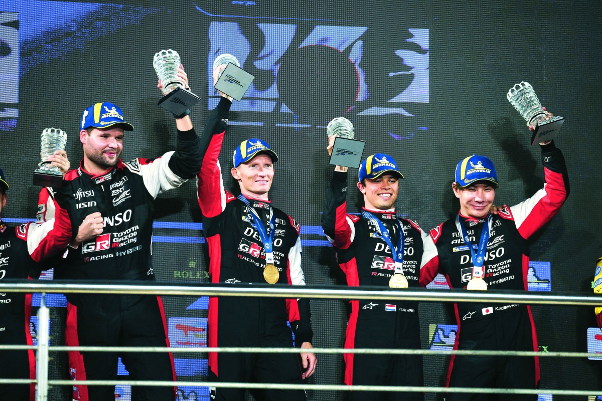 اختتم فريق تويوتا جازو للسباقات موسم بطولة العالم للتحمّل التي ينظمها الاتحاد الدولي للسيارات بفوز كبير مع حصوله على المركزين الأول والثاني في سباق البحرين 8 ساعات. فقد قدّم مايك كونواي، كاموي كوباياشي، ونيك دي فريس أداءً استثنائيًا على متن مركبة تويوتا GR010 العالية الأداء التي تحمل الرقم 7، حيث نجحوا في تحويل مركز الانطلاق الأول إلى انتصار، ليضمنوا الفوز التاسع على التوالي للفريق، بينما أكمل زملاؤهم سيباستيان بويمي، بريندون هارتلي، وريو هيراكاوا على متن مركبة تويوتا GR010 العالية الأداء التي تحمل الرقم 8 هذه النتيجة المثالية مع فوزهم بالمركز الثاني بفارق 19.378 ثانية فقط خلف طاقم المركبة رقم 7.