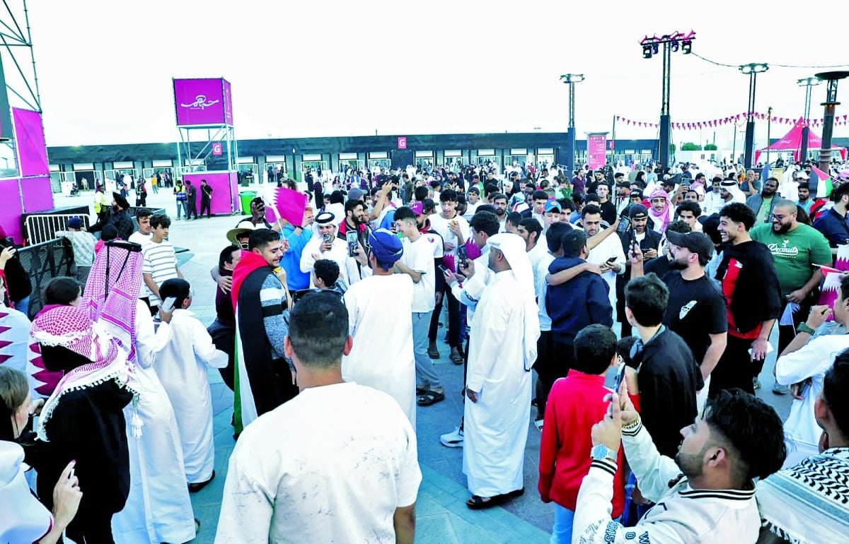 حظيت منطقة الفعاليات في استاد البيت المونديالي بحضور جماهيري واسع قبيل انطلاق مباراة المنتخب الوطني مع نظيره الفلسطيني في افتتاح بطولة كأس العرب قطر 2025 والتي انتهت بفوز الفدائي بهدف دون رد.