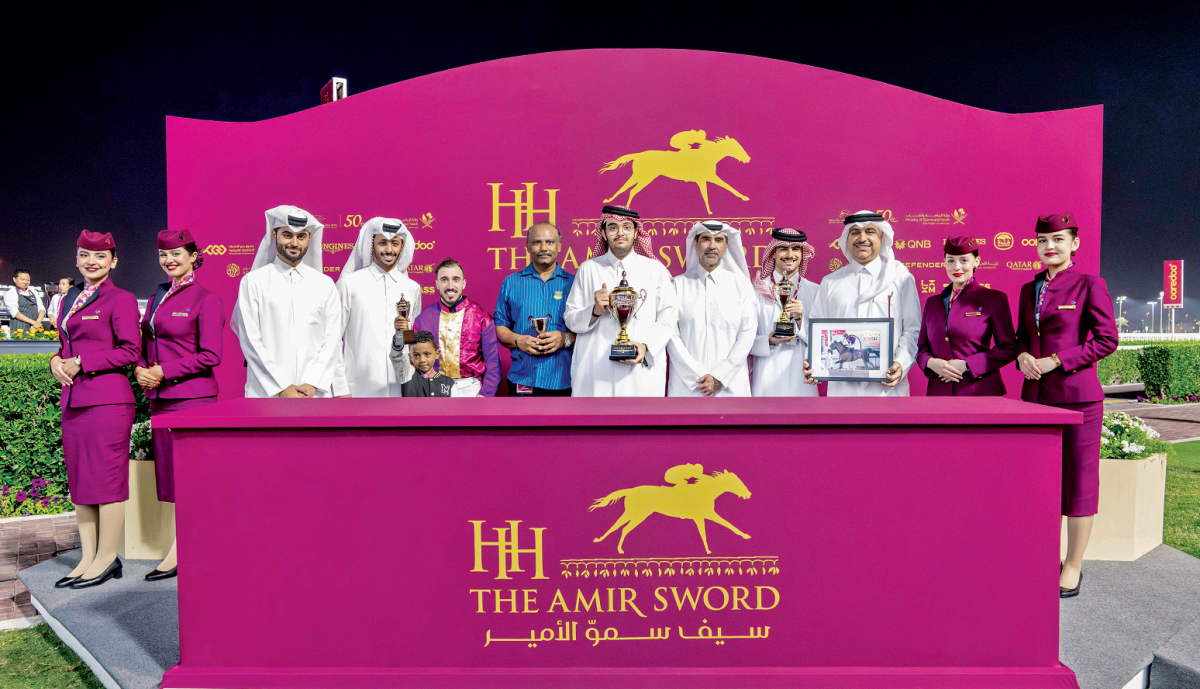 وتضمن السباق امس 7 أشواط، وعقب نهاية الشوط الرئيسي السابع على كأس الخيل العربية الأصيلة، تكافؤ مفتوح، 4 سنوات فما فوق، 1900م، قام السيد أحمد أمان الله الشيباني، نائب الرئيس التنفيذي لنادي قطر للسباق والفروسية، بتتويج الفائزين بالكأس، وتسلم الكأس الشيخ أحمد بن محمد بن فالح بن ناصر آل ثاني، مالك الجواد الفائز “هادي دو كارير”، ومهدياً الفوز الثالث في السباق لكل من المدرب جاسم الغزالي والخيال ماركو كازامنتو.