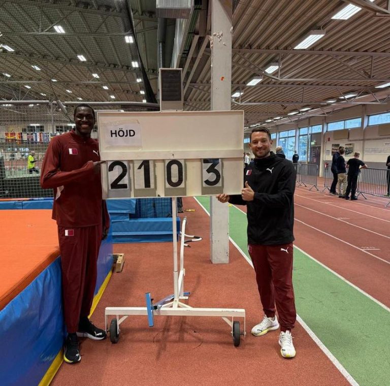 لاعب منتخب قطر أبوبكر حسين يحرز المركز الأول في الوثب العالي ببطولة بالاس سبيلين بالسويد