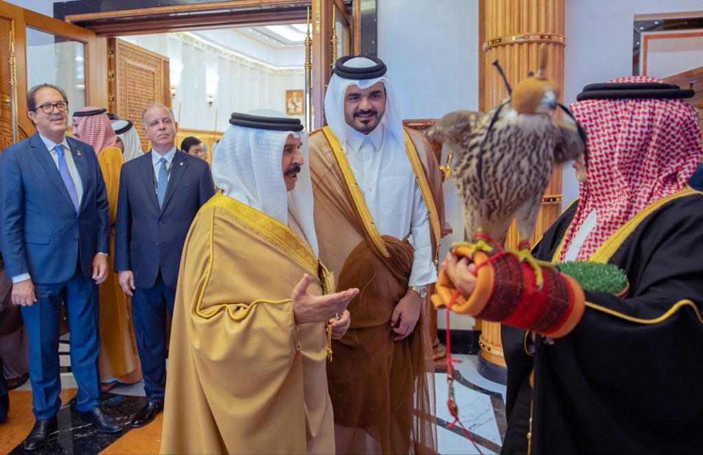 استقبل جلالة الملك حمد بن عيسى آل خليفة ملك مملكة البحرين الشقيقة، اليوم، سعادة الشيخ جوعان بن حمد آل ثاني رئيس اللجنة الأولمبية القطرية وكبار المدعوين ورؤساء الوفود المشاركة في دورة الألعاب الآسيوية للشباب في نسختها الثالثة التي تستضيفها مملكة البحرين.