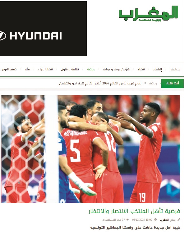 قالت جريدة المغرب ان الجماهير التونسية عاشت على وقع خيبة امل بعثرة جديدة بعد هزيمة الجولة الافتتاحية لكأس العرب امام سوريا ثم بالتعادل في الجولة الثانية امام منتخب فلسطين، وهو ما جعل عداد منتخب النسور يقف عند نقطة واحدة صحبة منتخب قطر الذي تعادل بدوره مع المنتخب السوري صاحب النقاط الاربع في الصدارة الى جانب فلسطين.