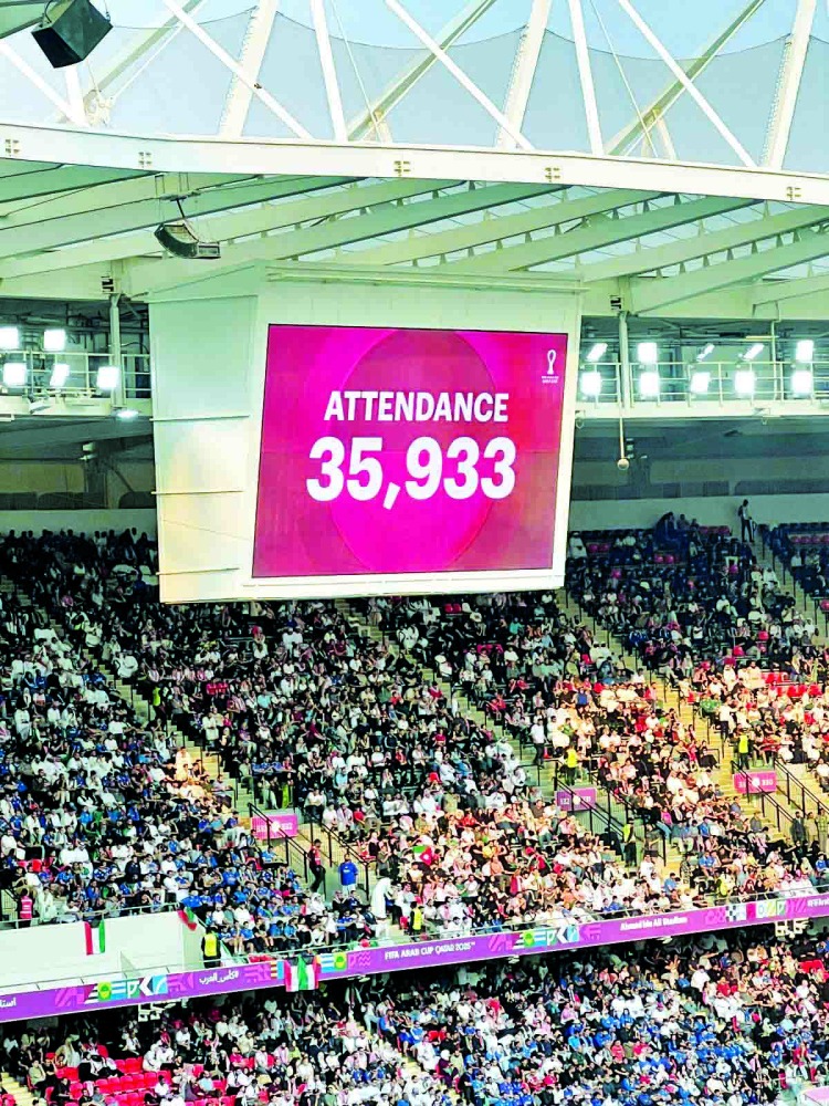 تظهر الشاشات العملاقة بمختلف ملاعب البطولة ارقاما غير مسبوقة ولم تعتدها الجماهير العربية، حيث اكدت الحشود الجماهيرية التي توافدت على الملاعب ان دولة قطر حاضنة كرة القدم العربية والعالمية هي الافضل في تنظيم البطولات والاحداث الرياضية الكبرى في مختلف الالعاب وان اللجنة المنظمة نجحت مجددا في ادارة هذا السيل الجماهيري الكبير بأعلى درجات الاحترافية والدقة بما يساهم في خلق تجربة رائعة للمشجعين سواء من المقيمين او الضيوف الذين حضروا من خارج قطر للاستمتاع بهذا الحدث.
