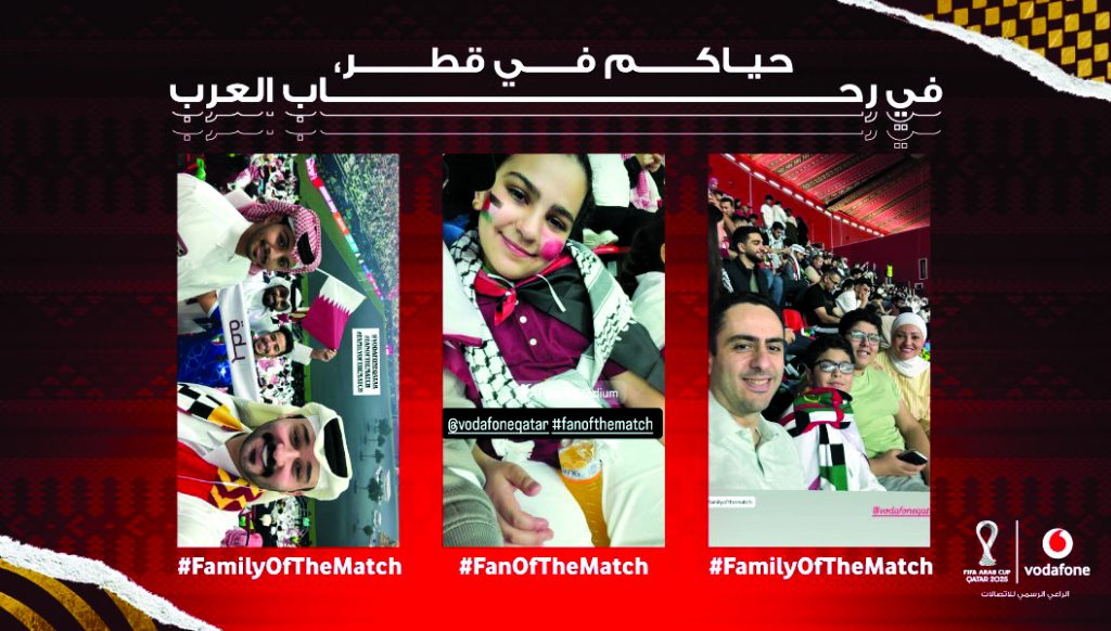 اطلقت فودافون قطر مبادرة تفاعلية خاصة للاحتفاء بالمشجعين والارتقاء بتجربة حضور المباريات خلال بطولة كأس العرب FIFA قطر 2025™، حيث تتاح للجماهير في كل مباراة فرصة الفوز بجائزة FanOfTheMatch# أو # FamilyOfTheMatch، وهي مبادرة أطلقتها فودافون قطر في إطار دورها الفاعّل كشريك الاتصالات الرسمي للبطولة.