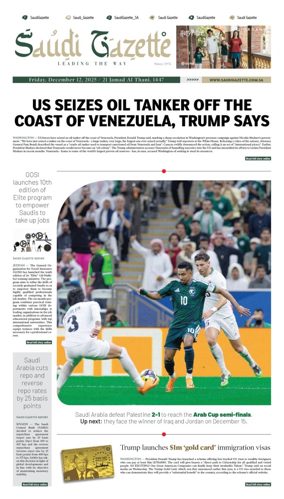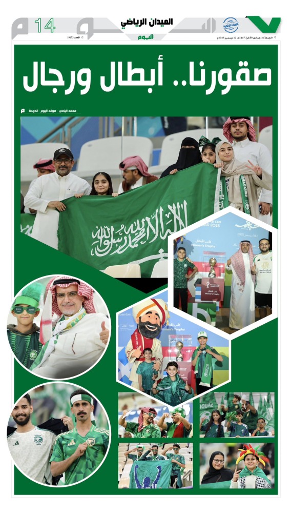 وعنونت صحيفة «عكاظ» السعودية فوز السعودي على الفلسطيني بالقول يا سعودي. باقي على «الكأس» خطوتين، وقالت منتخبنا ينتظر الفائز من مواجهة الأردن والعراق في نصف نهائي البطولة، وكشفت الصحيفة السعودية ان المدرب رونار كان حاضرا امس في لقاء الأردن والعراق، وقالت شرع مدرب المنتخب السعودي هيرفي رينارد، في تحضير لاعبي الأخضر لمباراة نصف النهائي المقررة يوم الاثنين 15 ديسمبر الجاري، حيث تواجد امس باستاد المدينة التعليمية، لرصد كل الإيجابيات والسلبيات للاعبي الفريقين للاستفادة منها قبل مواجهة الفائز منهما، وأعرب «رينارد» عن ثقته في قدرة «الأخضر» على تقديم الأداء المنتظر في المواجهة القادمة.