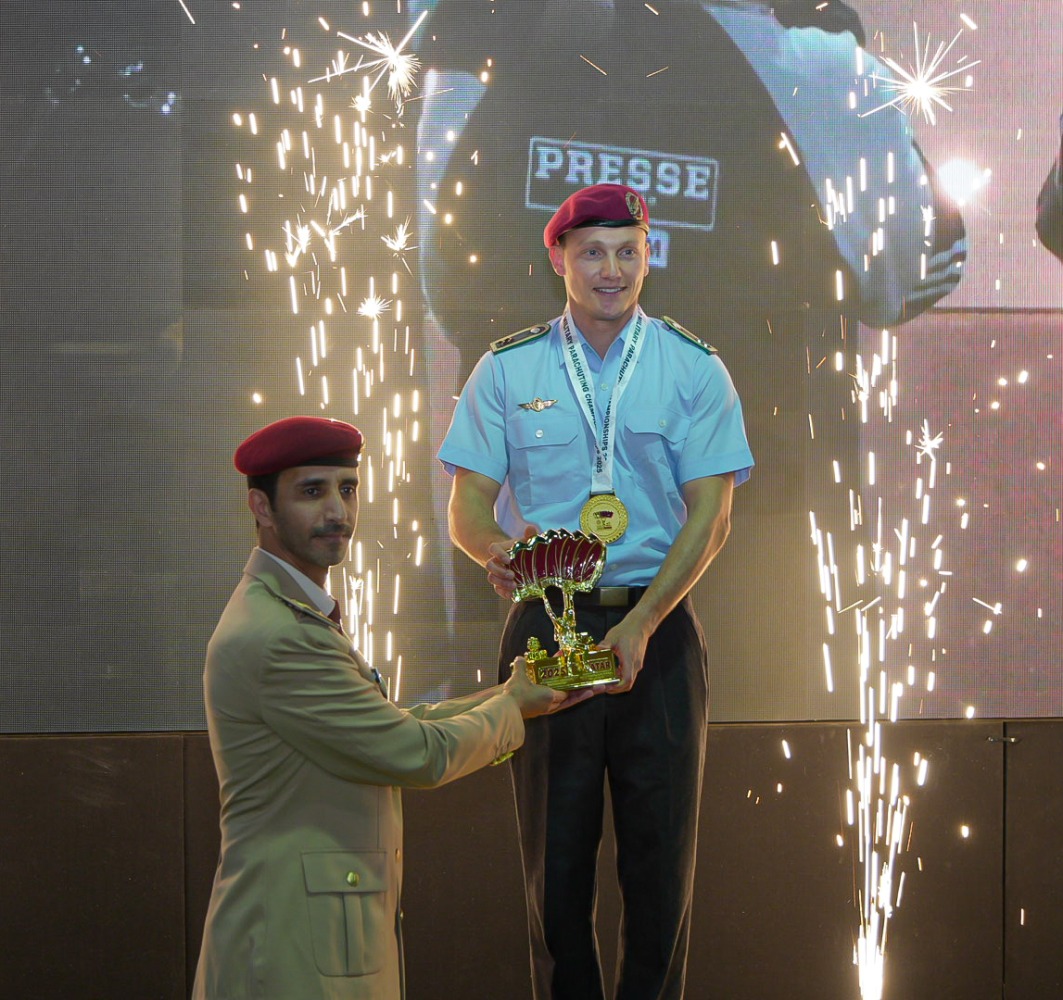 مراسم التتويج جرت وسط اجواء رائعة ومميزة يسودها التنظيم الجيد والانضابط وترتيبات عالية الجودة ، من اسرة لجنة قطر للرياضات الجوية ، مع الفرحة والسعادة الغامرة وابتهاج المتوجين بالألقاب والأوسمة الملونة ، حيث عزفت الاناشيد الوطنية لاصحاب المراكز الاولي وبمشاركة كافة الوفود الرسمية من قيادات ومظليين احتفلوا وصفقوا بحرارة كثيرا للابطال والبطلات المتوجين بالمراكز المتقدمة .