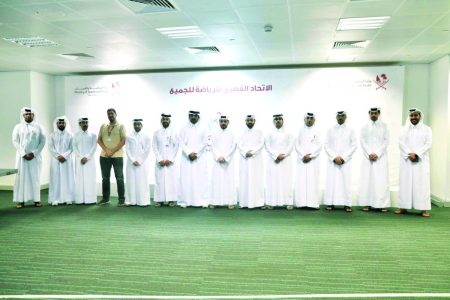 رئيس الاتحاد عبد الرحمن المناعي يتحدث مع البطل ناصر العطية