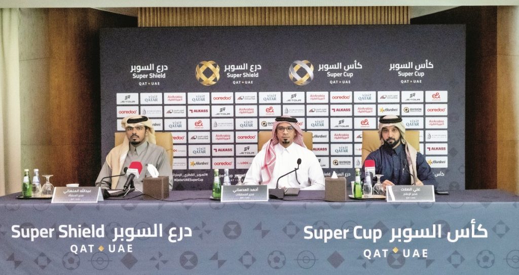 عقدت اللجنة المنظمة لبطولة كأس السوبر القطري الإماراتي مؤتمرا صحفيا أمس للكشف عن آخر التحضيرات لانطلاق منافسات النسخة الثالثة من البطولة، التي تجمع أندية السد والغرافة والدحيل والأهلي من قطر، وشباب الأهلي والشارقة والوحدة والجزيرة من الإمارات، وشهد المؤتمر الصحفي الإعلان عن تفاصيل الجوائز المالية للبطل والوصيف والفعاليات المخصصة للجماهير في الملاعب التي ستستضيف المباريات، حيث ستقام مباراتان في الدوحة تجمع الأولى الغرافة مع الشارقة يوم 22 يناير الجاري على استاد ثاني بن جاسم بالغرافة، وتجمع الثانية السد وشباب الأهلي يوم 24 يناير الجاري، على استاد جاسم بن حمد بنادي السد، كما تقام مباراتان في أبوظبي، حيث يحل الدحيل ضيفا على الوحدة يوم 23 من الشهر الجاري، كما يحل الأهلي ضيفا على الجزيرة يوم 25 من الشهر نفسه.