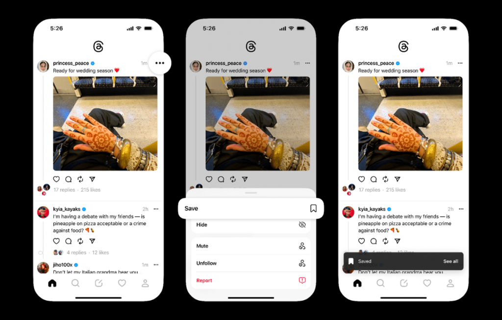 بدأ ثردز باختبار ميزة الإشارة المرجعية المطلوبة بشدة للسماح للمستخدمين بوضع إشارة مرجعية على المنشورات المفضلة لإعادة زيارتها لاحقًا، وفقًا لرئيس إنستاجرام، آدم موسيري. وقالت ميتا إن التحديث يبدأ بصفته اختبارًا محدودًا. ووفقًا للقطات الشاشة التي شاركتها ميتا، يبدو زر الحفظ في ثردز مشابهًا جدًا لإصدار إنستاجرام من الميزة. ويستطيع المستخدمون الوصول إلى المنشورات المرجعية …